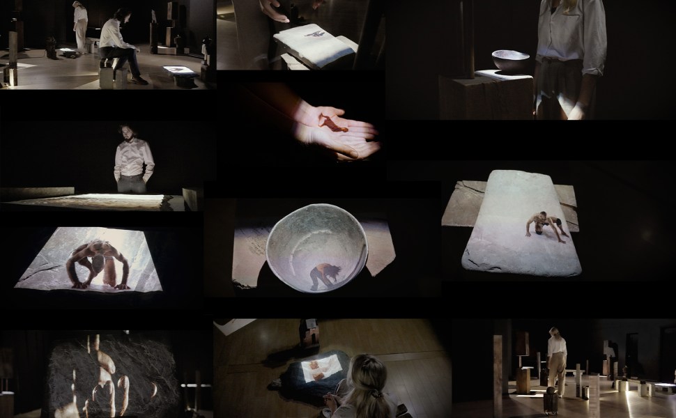 De cette collaboration émerge la redéfinition de l’intime dans une rencontre entre le numérique et l’organique.En élaboration depuis 2016, MIRAGES traduit un désir d’aborder autrement la notion de proximité dans une rencontre entre la projection numérique et l’organique par le biais de plans vidéo à échelles micro et macro. Inspirés dans leur conception par le bois, le sable, la paume de la main et l’ardoise, les huit modules sont disposés de manière à permettre au public de faire siennes ces matières poreuses animées. L’œuvre prend tout son sens dans l’interaction qu’elle induit avec la spectatrice ou le spectateur qui, dans un geste d’ouverture, cueille la danse dans le creux de ses mains ou l’apprivoise en la laissant glisser sur d’autres surfaces de projection.
